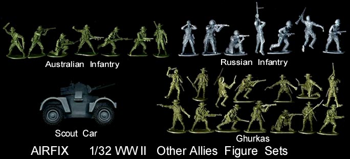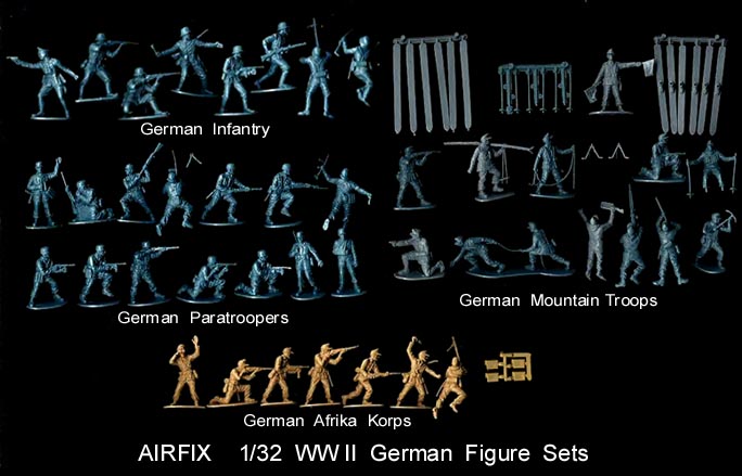 Now in 2009 Hornby new owner of the old Airfix molds has begun reissuing the WWII sets in small 14 figure boxes. Every pose in a particular set may not be in each box.