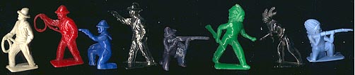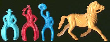 The Cowboys, Indians, football and baseball players were made by Ajax, then Joy Toy and some by Tootsietoy.