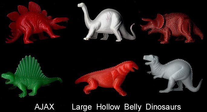 AJAX DINOS Mostly polyethylene but Some were made in a rubbery plastic.