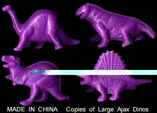 Blow molded dino copies have been made in China. The Brontosaurus is about 5 inches long.