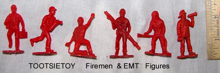 Tootsietoy made 4 ENTs and 4 firemen in one mold. We have only found them in red.