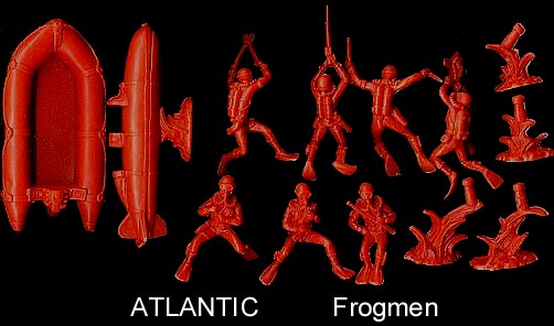 Blister Cards - Atlantic put at least some of these sets in small blister cards so kids could see what they were buying. The Medical Corp blister card never has all 16 pieces. A large double blister card was made for each of the four eras of History Atlantic produced figures in (Ancient, American West, WWI and Modern Military). The large double blister card each contained from 1 to 2 sets of opposing armies. The WWII card features Marines and Japanese, while the Modern Military one features Paratroopers and Commandos.