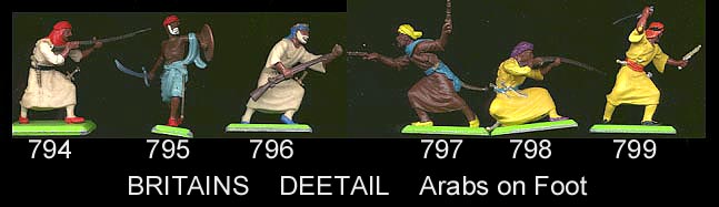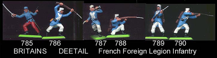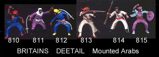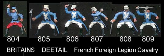 806 and 809 are very similar in appearance, but 806 does have a beard. Also unique is the fact that 808 has a sword molded onto the arm (like ACW figures) unlike most other Deetail cavalry figures whose swords are separate. All mounted figures come with a horse unless otherwise noted