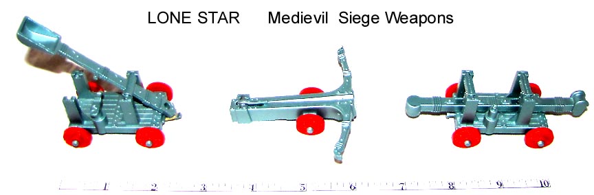To go with the above figures Lone Star made a series of much smaller scale siege weapons. The weapons bodies are diecast metal with plastic wheels.