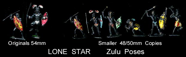 From the Mike Handley collection. All eight Zulus. Last two figures on the right are the same pose but with different weapon damage.