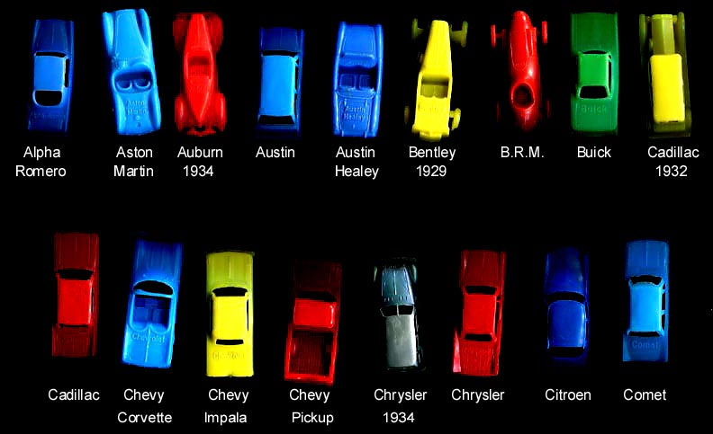 Chrysler (sedan); 1 green, 4 red, 1 silver, 1 blue, 2 yellow, 1 pink.