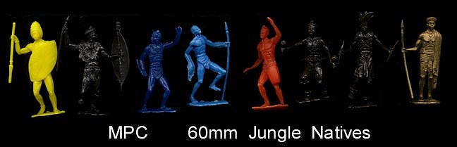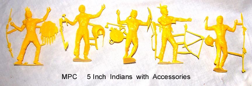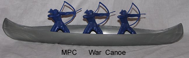 MPC copied three of the Tim-Mee 60mm Indians (they copied Marx in a 45mm size). Sometime these figures have holes in their bases and were sold with the three peg large (13 inch long) canoe.