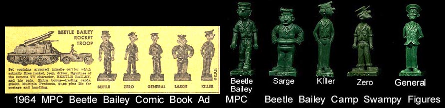 MPC made five character figures to go with their army "Camp Swampy" playset based upon the popular Beetle Bailey comic strip of the times. General Halftrack figure only marked "General".