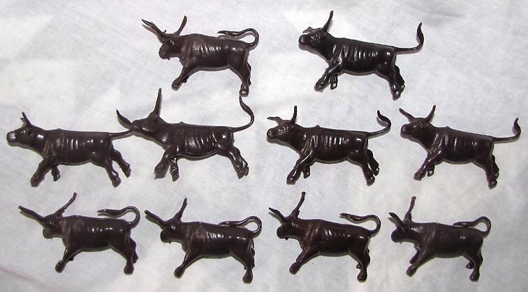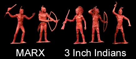 12.00 RECAST all six 3 Inch Indians in six poses, very dark purplebrown, a few feathers may be short. (1 IN STOCK)