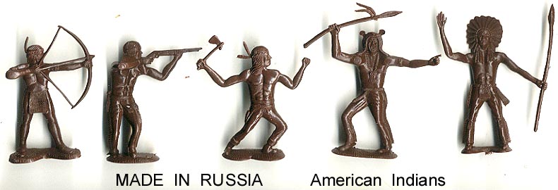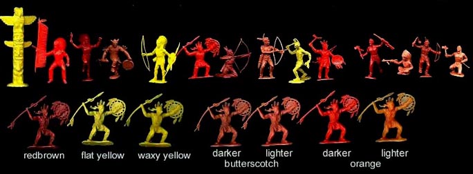 4.00 Indian brave running with knife and tomahawk; NONE, (2.00 missing one or both feathers; 1 tan, 3 light tan).