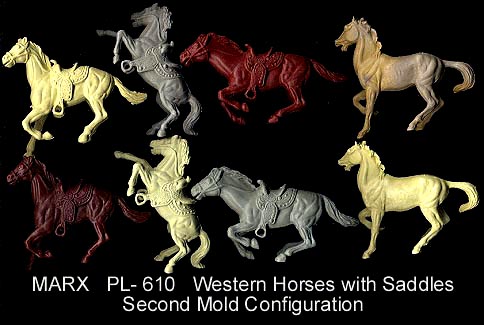 3.00 MX166 Foot Walking with saddle; RUBBER; 1 tan early no base style, 3 light brown, SP; 4 brown, 3 red, 6 green, 2 yellow, 2 metallic blue.