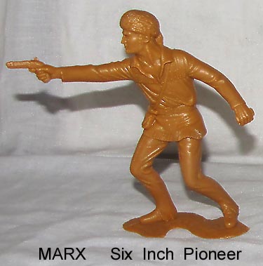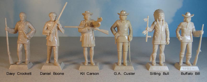 Both sets have been said to be by Marx. A careful examination of the Marx mold list erases this thought as there is no evidence that Marx made either of the following two groups of cereal premium figures. Early toy figure dealers knew that Marx figures sold for higher prices and so labeled these figures as Marx. We do not know who made them but we do know that Marx did not. The same problem exists on ebay as many many auctions label nonMarx figures as Marx in hope of getting a higher sale price.