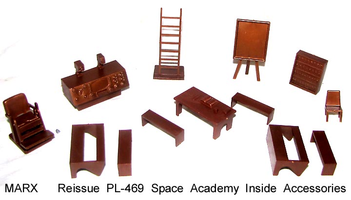 Reissue Marx PL-469 Space Academy inside accessories. Made in a semisoft red plastic.