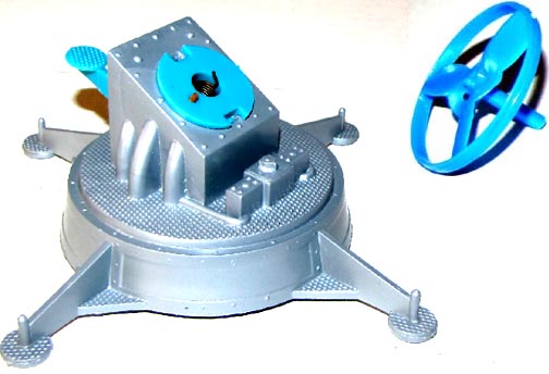Marx made a small "exploding" mountain for their WWII playsets which were made in brown hard plastic. it was then used in the Moon Base playsets in light green. Picture above shows both versions (MISSING TRIGGER). It was reissued without a spring or trigger in the 1990s in a bronze color.