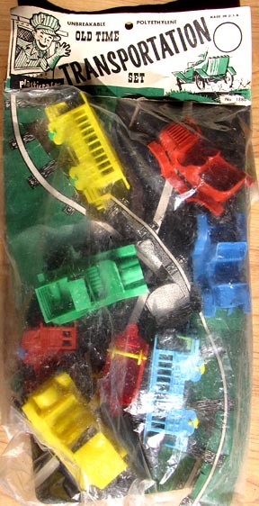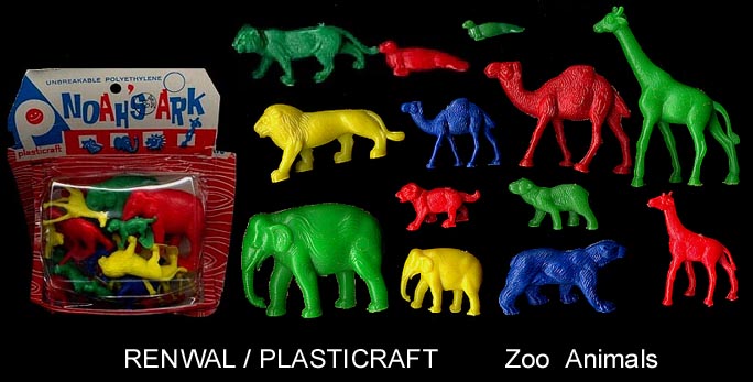 These animals were first made by Renwal in the late 50s for their zoo playset. Renwal decided to get out of the toy business and concentrate on their model kits and sold off their toy molds in the 1959/60 period. Plasticraft bought a number of the molds like the Viking Ship, Panama Canal, drawbridge and zoo sets and sold the items in their own packaging. Pictures courtesy David Schafer.