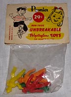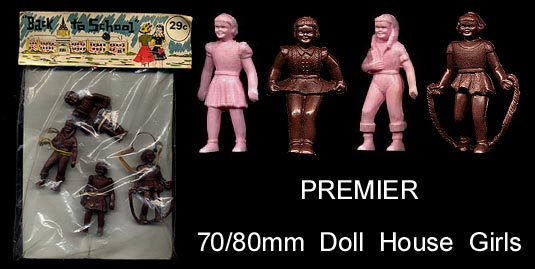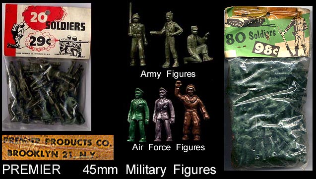 Premier was based in New York City as was Lido and evidently used the same mold maker as their figures bear a striking resemblence to Lido's figures. Some of the cowboys and Indians are exact copies of Lido's figures.