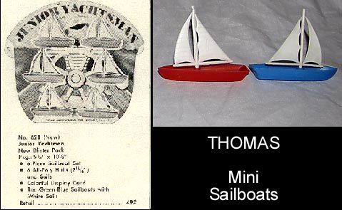 Thomas made a variety of plastic sailboats. These are the smallest they made at under three inches in length.