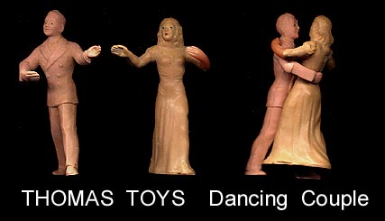 The dancing couple was engineered so that the figures cling together as if dancing. The bent arm on each figure was molded separately and glued in place.