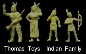 From the estate of the founder of Thomas Toys comes this lot of probable test shots of the 45mm Indian family in waxy white and pale yellow. Each set of four figures will be a mix of these colors as they are hard to match.