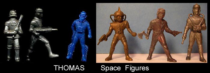 Plasticraft made six 50mm space figures in hard plastic and sold them on cards. Three figures for 10 cents.