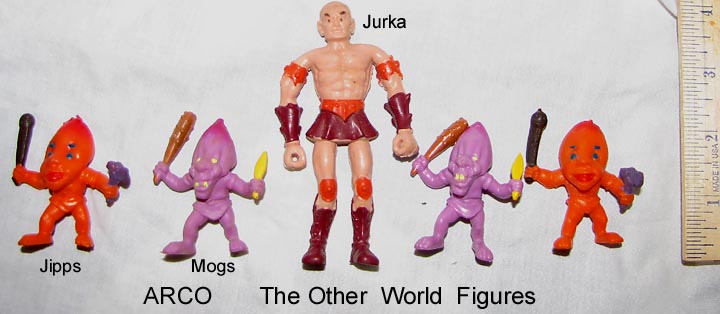 ARCO made a series of unique fantasy figures for their THE OTHER WORLD sets in the early to mid 1980s. Most were 4-6 inches tall but Jipps and Mogs are only about two inches in height.