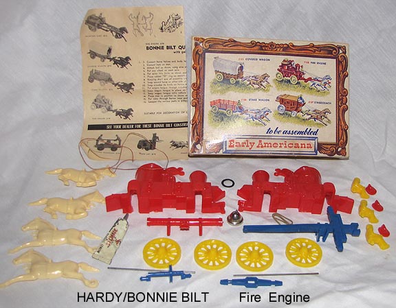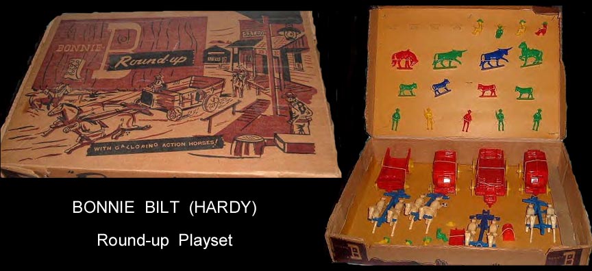 Bonnie Bilt may have been the retail arm of Hardy Molding. The series of Hardy vehicles were also sold in Bonnie Bilt packaging. Any information on the connection between these two companies would be welcomed. Banner Toys ended up with many of the molds.