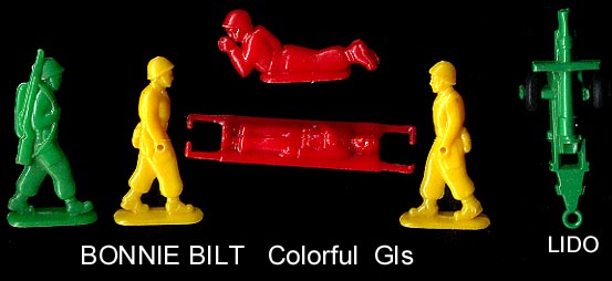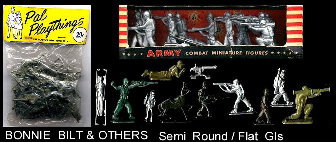 Bonnie Bilt made some semiround/flat GIs in the 50s. Someone made smaller copies which were sold by PAL in Headercard bags and REMCO with their bulldog tank.