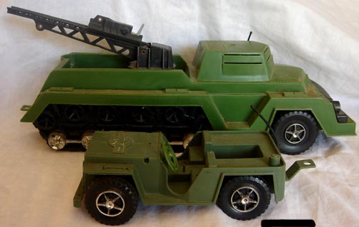 Above picture shows two incomplete examples of some of the vehicles that came with the white GIs. The jeep is bigger than 54mm.