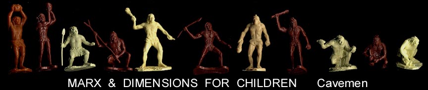 Made in Hong Kong for DFC. The above picture shows one butterscotch and five cream cavemen made by Marx and the five dark brown cavemen made by DFC. As you can see the DFC figures are compatible with Marx figures.