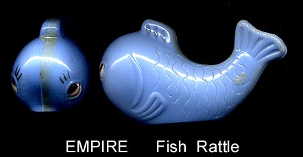 Fish rattle, one of the first plastic figures made, circa 1948/49, HP, blue.