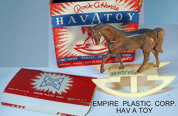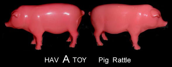 Empire Plastics also sold under the Hav A Toy name as can be seen on the box in the picture below. Most of the large animals are hollow and act as rattles. Animals with legs are marked HAV A TOY inside one leg.