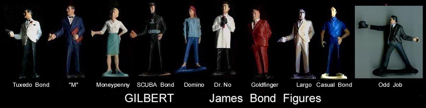 Gibert made a series of 3 1/2 inch figures from the 007 James Bond spy movies. They are made of an odd hard plastic and factory painted.