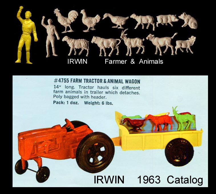 Gay also made a blow molded barn with window insert ( seen in 1965 Spiegel catalog). It was filled with 8 different kinds of farm animals made in white soft plastic. The four smaller animals seem to be based upon Auburn.