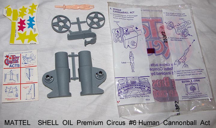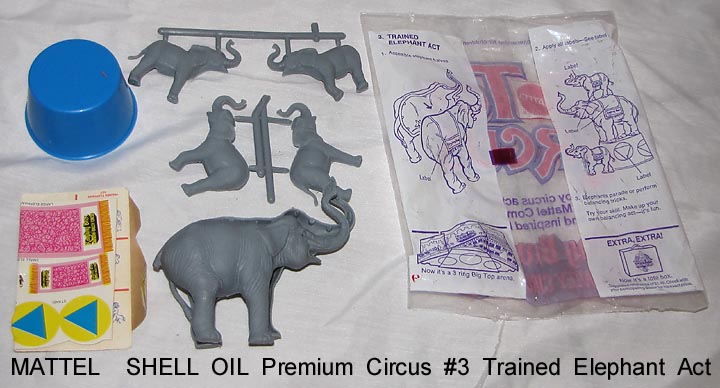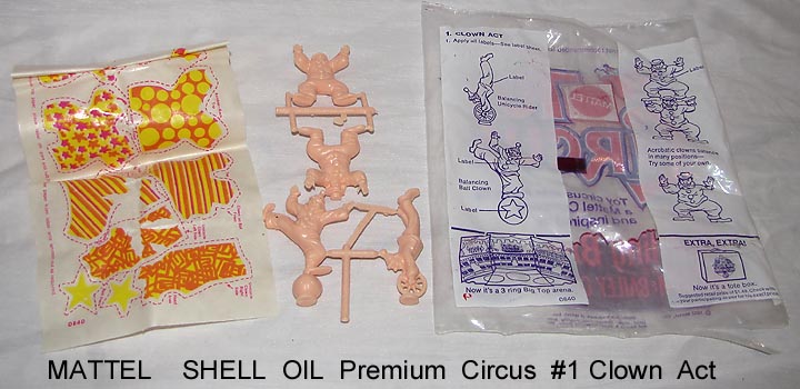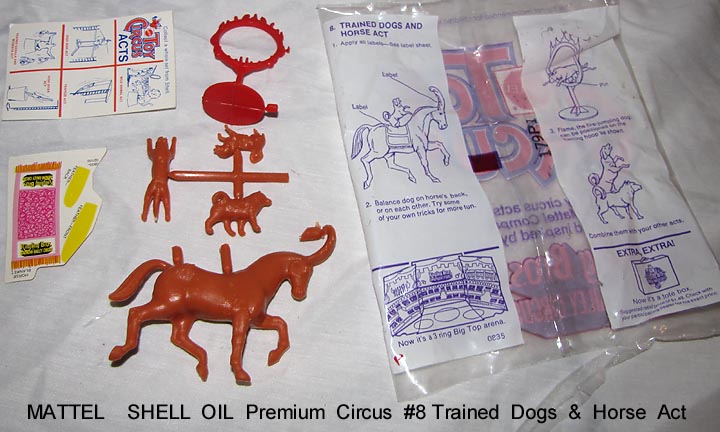 - 1972 Mattel Shell Oil premiums, bags opened to show contents. Compatible with Marx circus playsets.