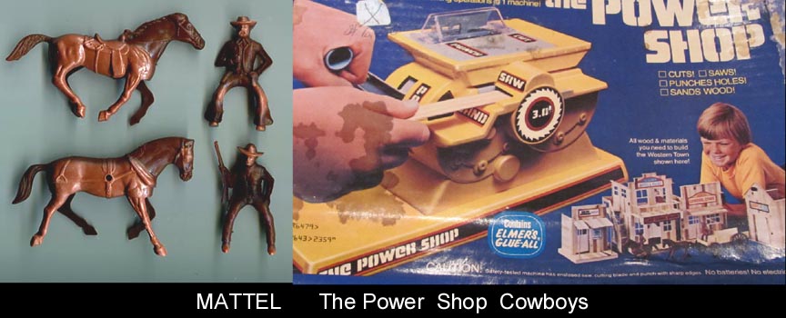 These 54/60mm cowboys were made in the late 1970s for a The Power Shop "sawmill" set where kids got to cut things to make a western town. Like to see that for sale today....