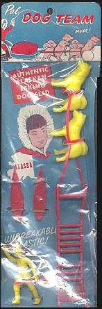 Pal made at least 8 different hollow body dogs. The husky was found in Eskimo sets while all of the dogs were sold on blister cards as seen in PFPC issue 32 page 25. Usually made in soft plastic white hard plastic examples were sold in you paint them header card bags.