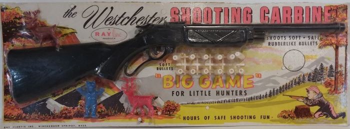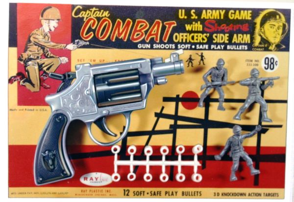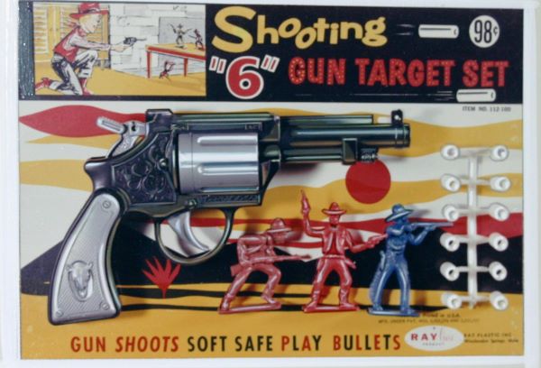Ray Plastics made plastic bullet shooting Gatling guns, pistols, rifle and dart guns. For targets they made copies of MPC, Lido, Marx and Tim-mee figures.