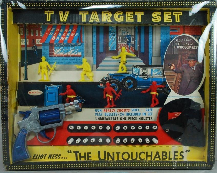 made in red, yellow and blue and sold with bullet shooting toy guns as Untouchables and I Spy TV show tie ins.