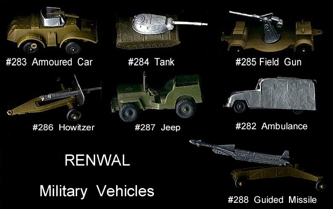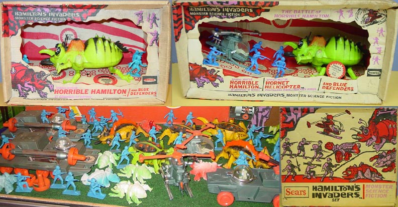 Remco made a vehicle driver and six foot soldiers for their Hamilton Invader sets. The figures are about 60mm in size. The seated vehicle driver was made in white and the foot soldiers are usually found in blue. The foot soldiers are also found in red, perhaps for sale in Canada.