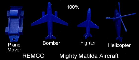 The Mighty Matilda aircraft carrier came with fighters, bombers, helicopters and a plane mover made in dark blue plastic. The above picture shows them life size.