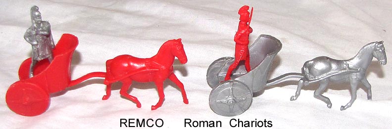 Remco made a nice pair of ancient Roman ships. The Big Caesar was battery operated to roll along the floor with the oars "rowing". The smaller Gallant Gladiator was not battery operated but also had wheels and the oars would "row" when you pushed it. The ships came with a nice complement of 45mm Romans with a chariot + shooting catapults. Picture courtesy David Schafer.