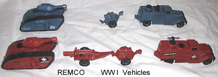 REMCO was started in the late 1940s by two cousins, Isaac "Ike" Heller and Saul Robbins. The company's original name was Remote Control and the first product made were toy walkie talkies. The company name was compressed to REMCO and they made a diverse line of battery operated toys including Roman and modern ships that moved and science fiction space ships, monsters and submarines. Many of the figures that came in their sets were sculpted by Ewhen "Gene" Salamacha. The company fled for bankruptcy in the early 1970s.