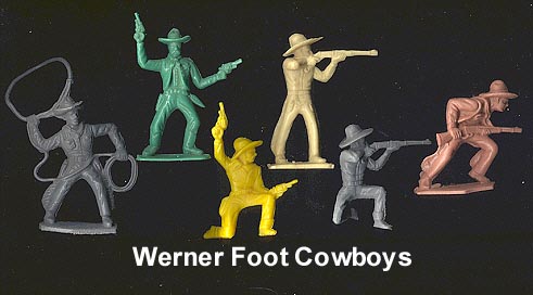 An interesting company they copied the Timmee line for their Cowboys and Indians. They copied Ideal for their GIs. The GIs were made in a plastic very similar to the Timmee figures and it is supposed that a Timmee (or exTimmee) employee was some how involved as Werner was also located in Illinois. One sure way to tell them apart from Tim-mee figure is the mold cavity number found on the back of each Werner western figure.
