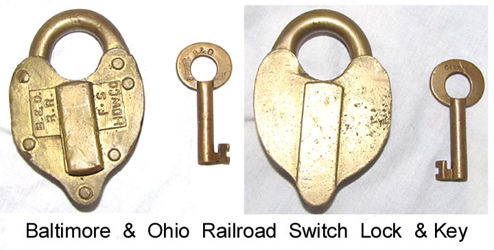 - B&O; RR (Baltimore & Ohio Railroad) incised one side of dust cover F.S HDWCo incised other side, no chain. Key marked B&O;, FRAIM banner logo, C15511, long shank key