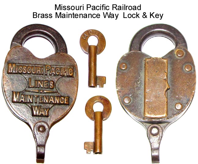MISSOURI PACIFIC LINES, MAINTENANCE WAY cast back, no chain, has working key marked MPMW, F-SHDWCo.