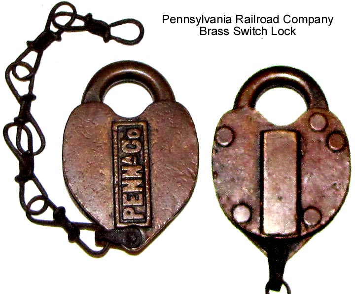 - PENNA Co incised shackle rear, Bohannan, 89, S incised shackle front. Brass heart shape switch lock, no chain. Pennsylvania Company Railroad (Lines West of Pittsburgh)
