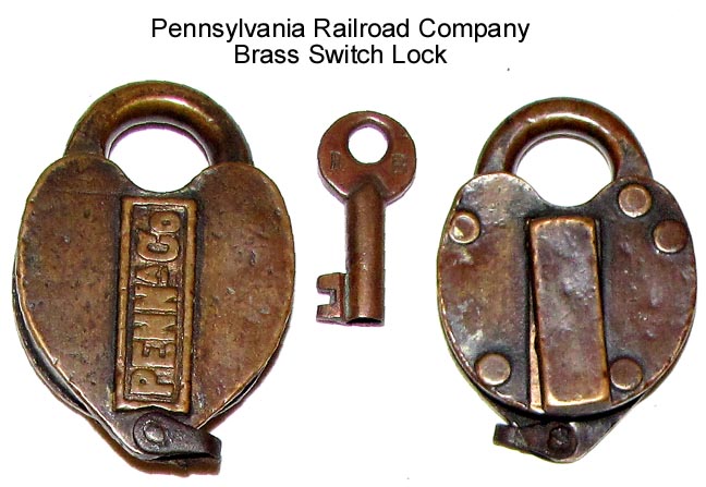 - PENNACO (Pennsylvania Company Railroad) cast back panel, no makers mark. No chain. Has key marked RB owner's initials?. Nice working brass heart shaped switch lock.