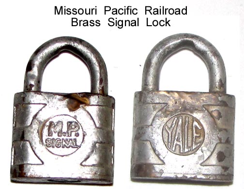M.P. SIGNAL cast one side, YALE cast other side, brass lock with silver paint, NO key.