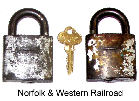 - N&W; SIGNAL DEPT. (Norfolk & Western Railway) brass signal lock, working key, has paint.