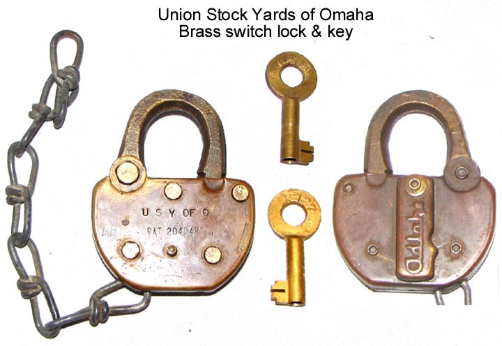 - UNION PACIFIC SWITCH CS 1, cast on back of lock, ADLAKE incised on dust cover, has chain, Key marked ADLAKE Main line brass switch lock.